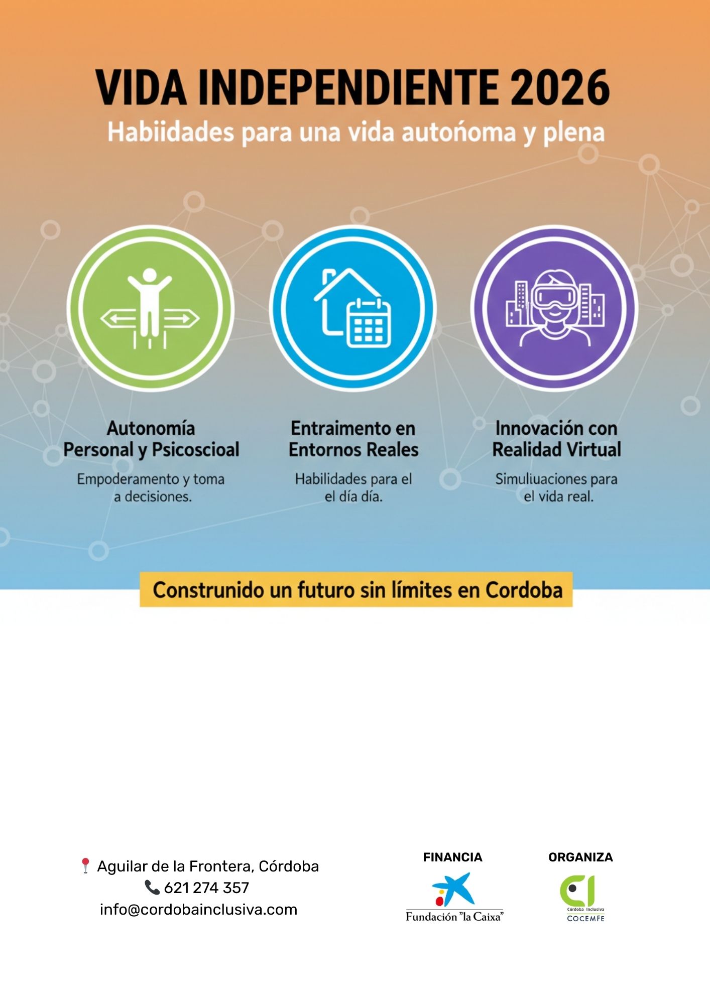 En Córdoba Inclusiva COCEMFE, lanzamos el programa Vida Independiente en personas con discapacidad, una iniciativa diseñada para empoderar a las personas con discapacidad física y orgánica de Córdoba, brindándoles las herramientas necesarias para que sean los dueños de su propio proyecto de vida.